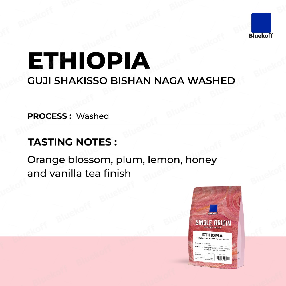 Guji Bishan Naga Washing Station ตั้งอยู่ในเมือง Shakisso ซึ่งตั้งอยู่ในเขต Guji โดยมีเกษตรกรรายย่อย 850 ราย สายพันธุ์กาแฟที่ทำการแปรรูปส่วนใหญ่เป็นสายพันธุ์พื้นเมือง ซึ่งเก็บเกี่ยวด้วยมือ กระบวนการโปรเซสเมล็ดกาแฟส่วนใหญ่ คือ ใช้วิธีการ การใช้น้ำแบบดั้งเดิม (Washed) รองลงมาเป็นการตากแห้งด้วยแสงแดดแบบดั้งเดิม (Natural) เป็นหลัก ในแปลงปลูกที่ยกสูงจากพื้นโดยใช้ตาข่าย ด้วยที่สถานีแปรรูปและฟาร์มตั้งอยู่บนพื้นที่สูง จึงทำให้กาแฟมีกลิ่นดอกไม้ที่ซับซ้อนและรสหวานละมุนและรสเปรี้ยวที่ชัดเจน