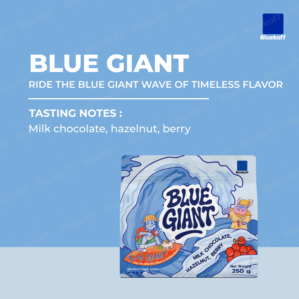 "บลู ไจแอนท์" คือ คลื่นยักษ์แห่งรสชาติกาแฟคลาสสิค เข้ม กลมกล่อม ที่ซ่อนความสดชื่นแบบฟรุตตี้ไว้ภายใน Blue Giant เป็นตัวแทนของเมล็ดกาแฟที่เชื่อมทุกยุคสมัยของกาแฟไว้ด้วยกันอย่างลงตัวและกลมกลืน