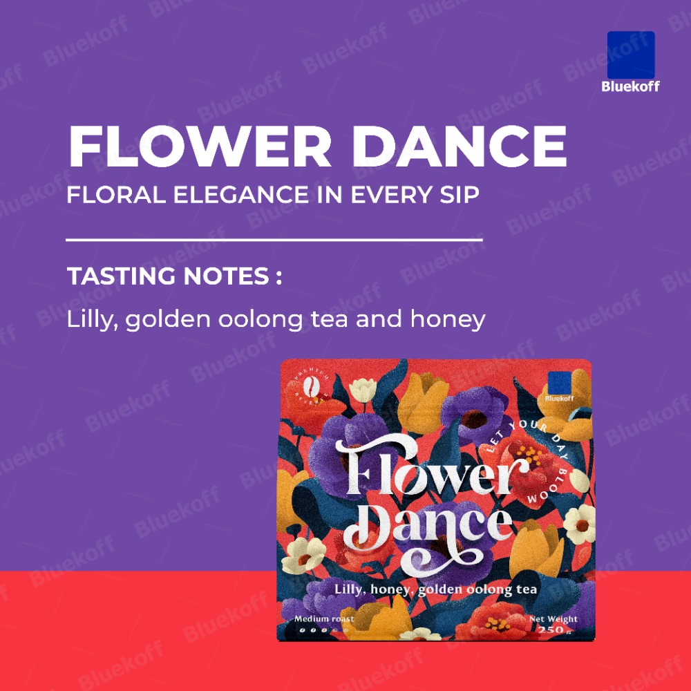 Flower Dance คือ กาแฟเบลนด์ที่รังสรรค์อย่างประณีต มีกลิ่นหอมและรสละมุนคล้ายชาดอกไม้ ผสานความนุ่มนวลและความหวานของกาแฟอย่างลงตัว ทุกจิบจะทำให้คุณสัมผัสได้ถึงกลิ่นดอกไม้ที่พลิ้วไหวในสายลม เหมาะกับการดื่มในช่วงเวลาเช้าที่สงบหรือบ่ายที่สดใส