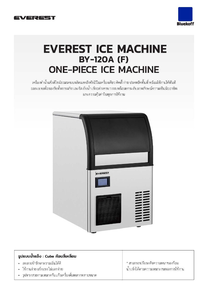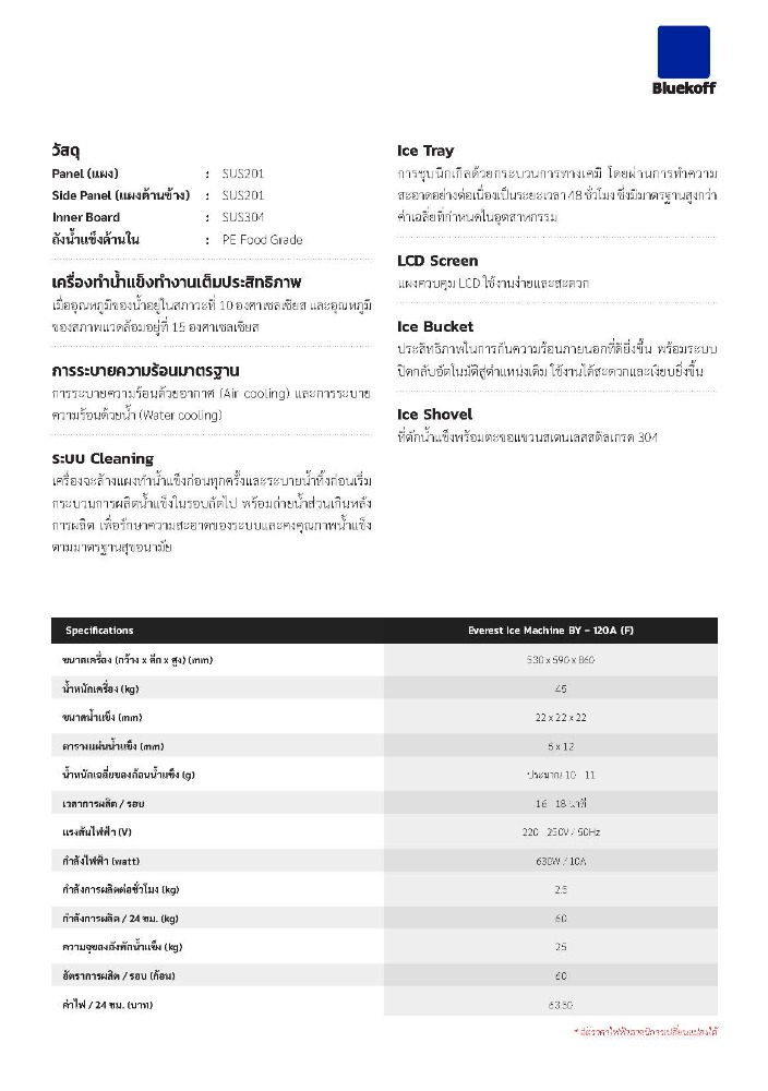 - รูปแบบน้ำแข็ง : Cube ก้อนสี่เหลี่ยม