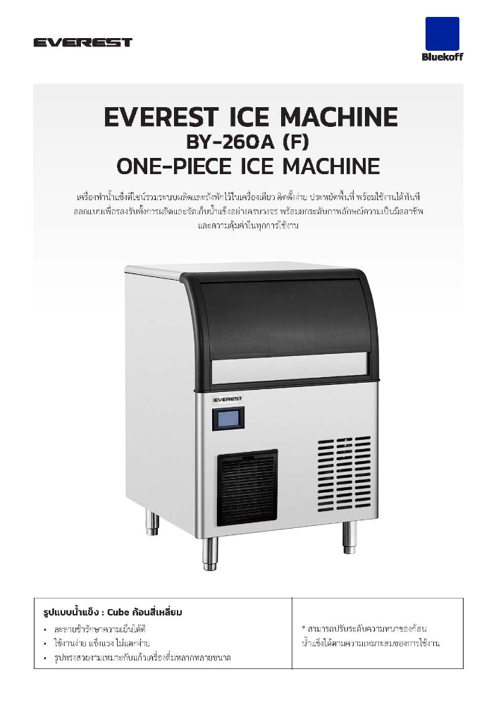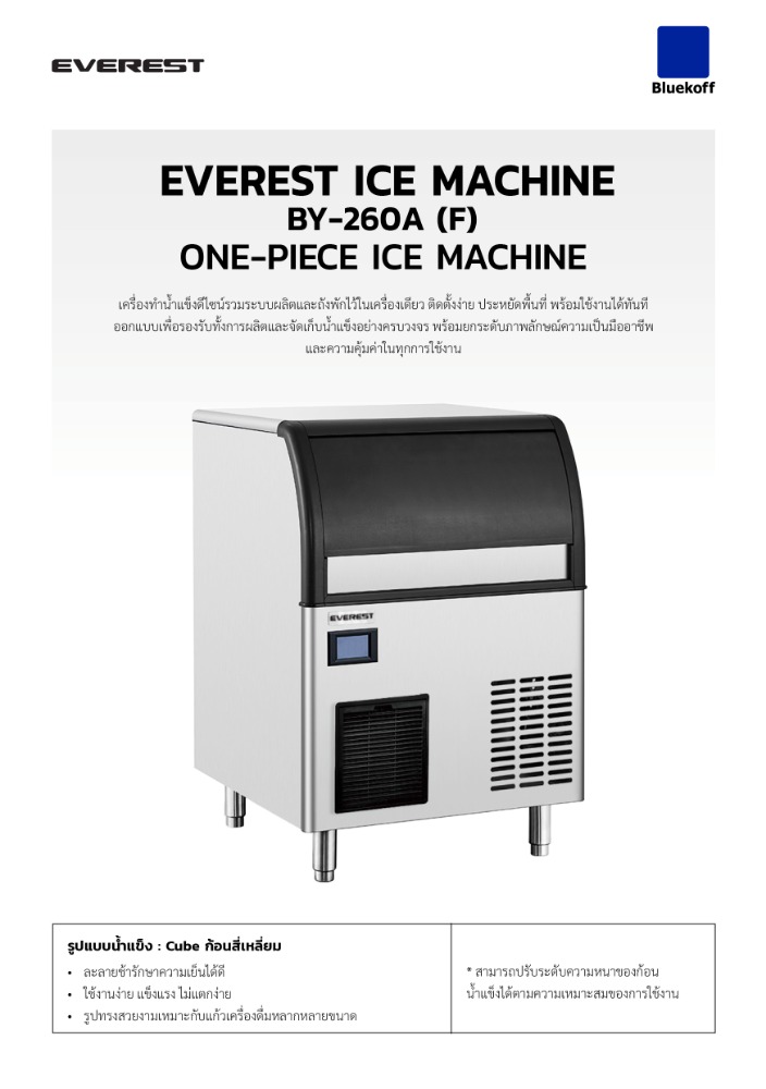 - รูปแบบน้ำแข็ง : Cube ก้อนสี่เหลี่ยม
