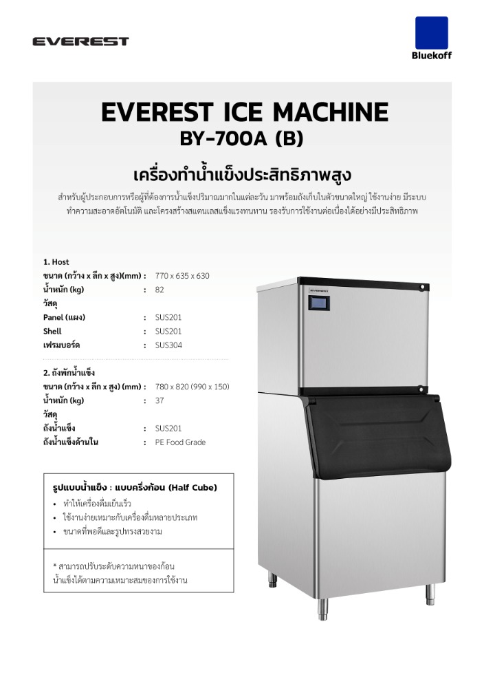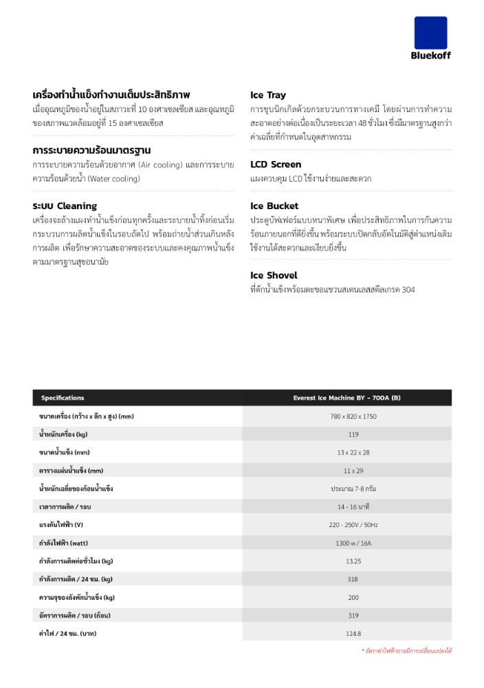 - ความจุของถังพักน้ำแข็ง (kg.) : 200