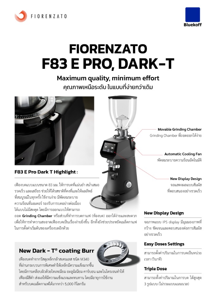 F83 E คือ ตัวช่วยที่ร้านกาแฟต้องการ เพื่อให้ได้คุณภาพการบดที่แม่นยำ สม่ำเสมอ ในทุกๆการใช้งาน และได้รสชาติของกาแฟที่สมบูรณ์แบบ เพียงปลายนิ้วสัมผัส