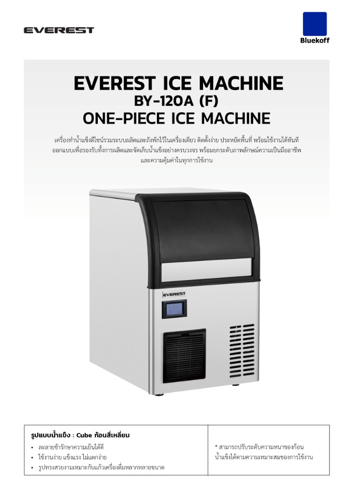 - รูปแบบน้ำแข็ง : Cube ก้อนสี่เหลี่ยม